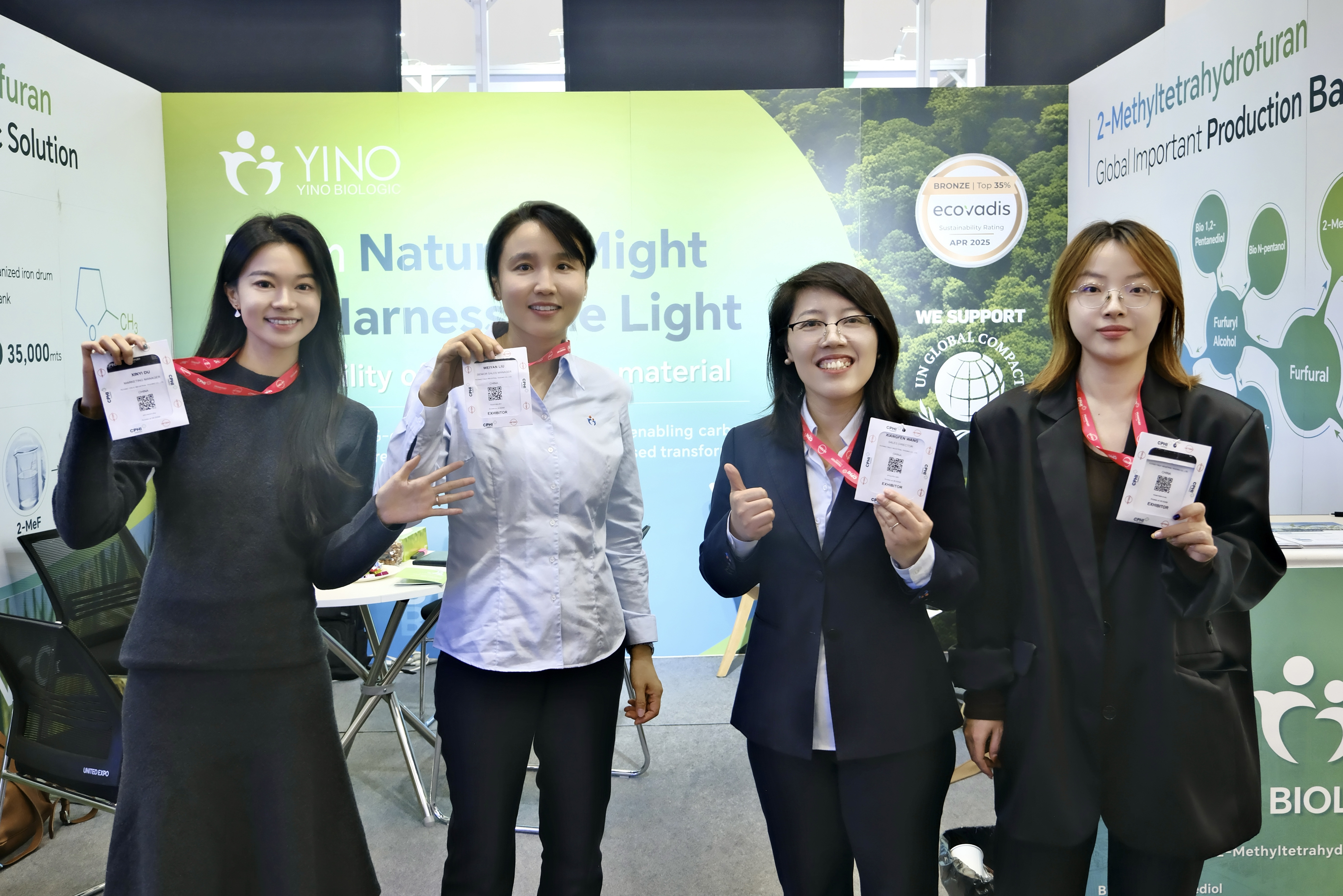 展會(huì)期間,YINO Biologic 展臺(tái)吸引了來(lái)自歐洲、印度、北美及亞洲的眾多制藥企業(yè)代表,成為現(xiàn)場(chǎng)關(guān)注的焦點(diǎn)。多家國(guó)際制藥公司與 API 供應(yīng)商對(duì)公司在綠色溶劑替代方案、碳減排路徑及合規(guī)標(biāo)準(zhǔn)等方面的實(shí)踐表示高度認(rèn)可,并就未來(lái)合作進(jìn)行了深入交流。多位合作伙伴認(rèn)為,YINO 的非糧生物基解決方案為制藥企業(yè)在可持續(xù)研發(fā)與生產(chǎn)優(yōu)化方面提供了切實(shí)可行的新路徑,助力全球客戶共同構(gòu)建低碳高效的綠色供應(yīng)鏈。